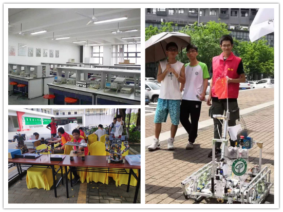 开放日当天,电智学院不仅开放了西门子工业领域、先进自动化技术联合实验示范中心等部分实验室和科研场所,供学生和家长对实验室的参观,而且在9B205展示了学生竞赛获奖情况、专利、论文等成果,在图书馆广场展示了学生创新创业项目作品、学生课程训练作品、学生课外制作作品等。