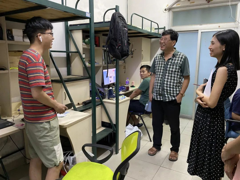 新学期伊始,学生陆续返校。为保障学生在校顺利开展学习,了解学生生活动态,9月3日至6日,学院党委书记邓成良、党委副书记梁意红、副院长宋跃教授、孙敬华教授及任斌教授带领辅导员团队,深入走访学生宿舍,督促同学们搞好宿舍卫生,注意个人防护,提醒学生及时调整学习状态,以良好的精神风貌迎接新学期。 此外,为迎接学生返校,学院在考研自习室、教学楼等位置悬挂标语,旨在激励同学们在经历疫情返校后,能够克服困难,努力学习。