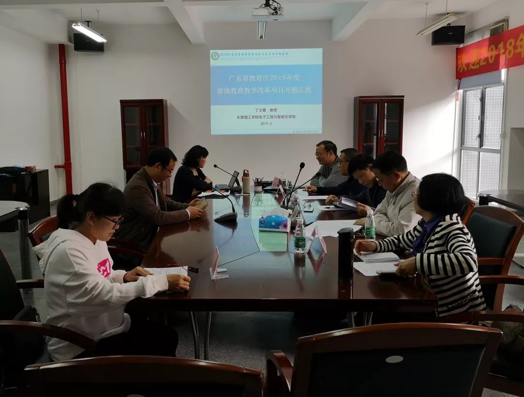 2019年3月1上午,东莞理工学院电子工程与智能化学院在8A207召开了2018年度立项省级质量工程及教研教改建设项目开题论证会。出席这次论证的专家有华南理工大学的於黄忠教授、广东工业大学的陈平华教授、东莞理工学院的李秀平教授、卢贵主教授和王红成教授。教务处的李莹老师、电智学院的任斌副院长及电气与自动化系全体教师也参加了这次开题论证会。