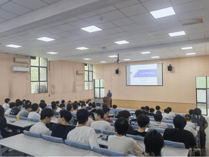 活动伊始,学院在电子楼8A103教室组织开展安全用电专题讲座。主讲人王彩申老师结合高校实验室典型事故案例,深入剖析电气火灾成因,重点强调“不私拉乱接电线、不使用违规电器”的“两不原则”。培训现场,王老师通过PPT演示断电应急操作流程,并邀请学生模拟练习心肺复苏“黄金8分钟”急救技能,强化“预防为主、生命至上”的安全理念。学院领导全程参与,与2023级、2024级研究生及创新实验室成员共同学习,现场互动氛围热烈。