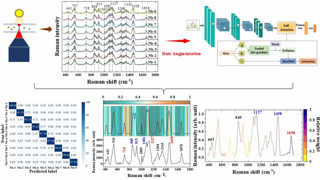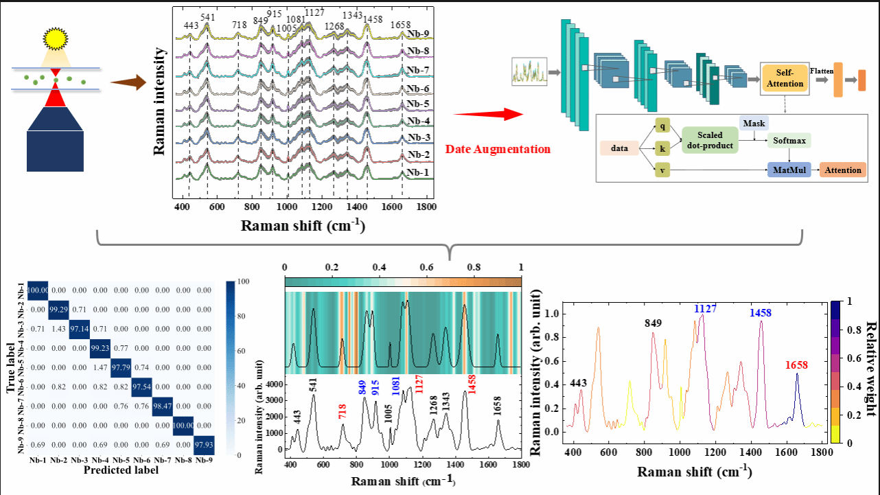 近日,我院袁玉峰研究员团队在在美国ACS旗下分析化学领域顶级期刊《Analytical chemistry》发表题为“Advanced Nosema bombycis Spore Identification: Single-Cell Raman Spectroscopy Combined with Self-Attention Mechanism-Guided Deep Learning”的研究论文。该成果以东莞理工学院为第一完成单位,袁玉峰研究员联培硕士生薛梦娇为论文第一作者,袁教授与广西科学院王桂文研究员、广西师范大学黎远鹏副教授为论文共同通讯作者。
