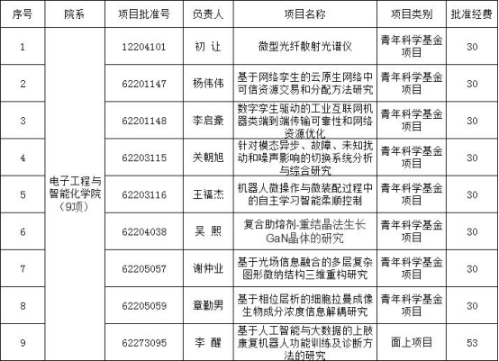 2022年国家自然科学基金项目结果已经公布,我院获批立项9项。其中,李醒获面上项目立项,初让、杨伟伟、李启豪、关朝旭、王福杰、吴熙、谢仲业、章勤男8人获青年科学基金项目立项。