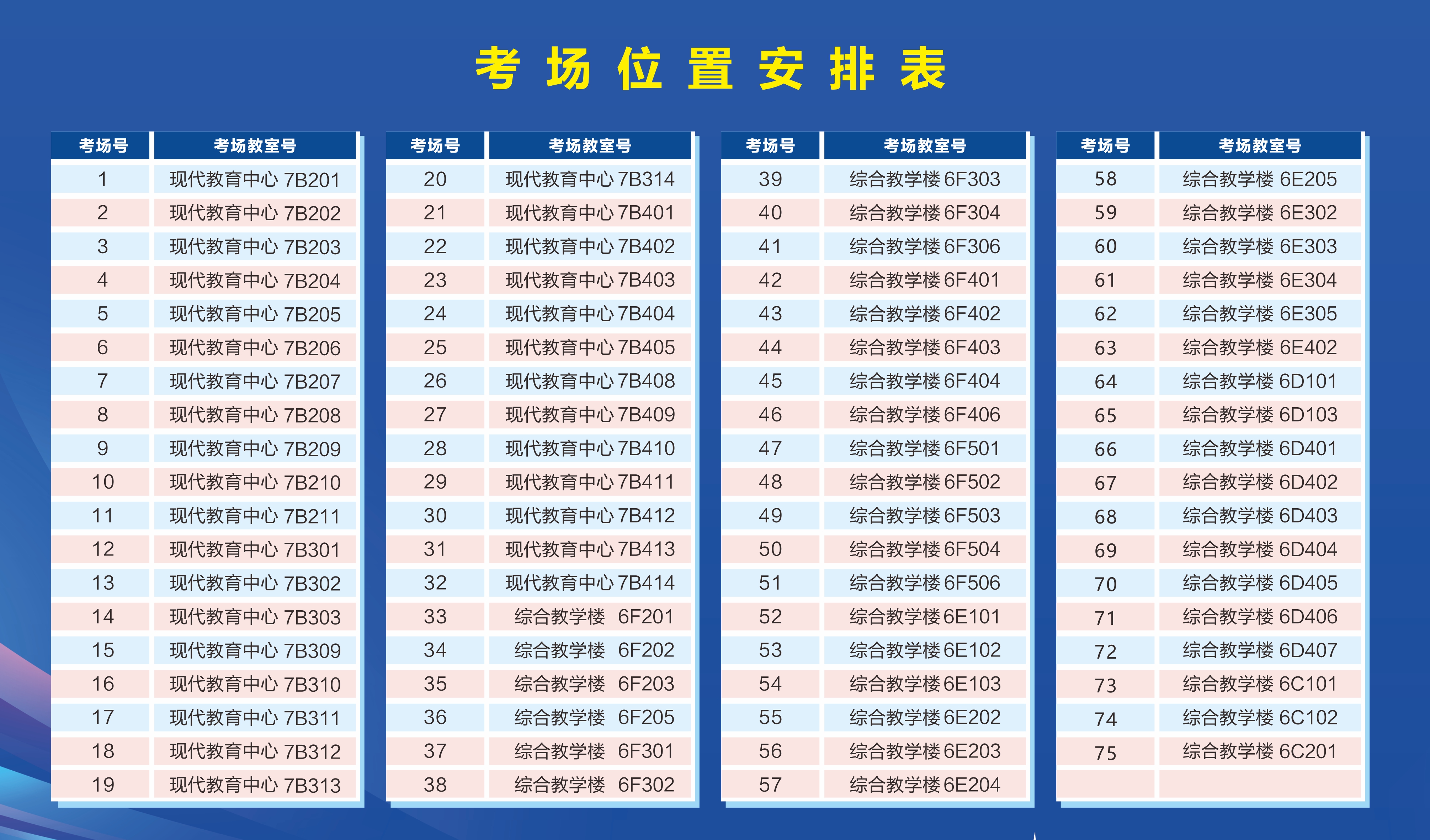 我校考点地址为广东省东莞市松山湖大学路1号,东莞理工学院(松山湖校区),具体考场安排表详见下图,或下载附件1。