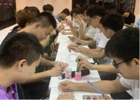 4月15日,19电子1班在莞华活动室唱起了团歌,拉开了学习党史的序幕。班会上,同学们回顾了中国共产党带领人民抗击疫情的历程后,挥舞着手中的彩笔,把对祖国的热爱、对党的敬佩、对医护人员的赞美、对美好生活的向往,绘制在小小的口罩上。同学们通过对口罩涂鸦的形式,感恩在关键时刻毫不退缩,危难关头毫不畏惧,英勇奋战在一线的无数共产党员;感恩在中国共产党的领导下,面对传播速度最快、感染范围最广、防控难度最大的一次重大突发公共卫生疫情防控中,中国向历史、向人民、向世界交出的这份抗疫合格答卷。同学们表示,在下一阶段,我们通过疫苗接种,共同携手构筑起防疫的长城后,或许在不久的将来,我们终将摘下口罩。这一个个五彩缤纷的口罩,传达出同学们“学党史、知党情、跟党走”的信心和决心,也传达出了同学们对美好生活的期待。