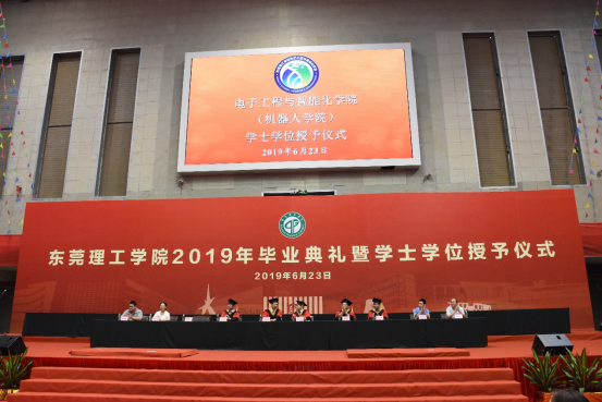 6月23日,紧随着东莞理工学院2019届本科生毕业典礼的隆重举办,当天下午,电子工程与智能化学院(机器人学院)在体育馆举行了学士学位授予仪式。电智学院(机器人学院)领导孙元章、胡耀华、邓成良、任斌、孙敬华,学院各系部中心、两办负责人,学院2019届全体毕业生、教师代表及部分家长出席了仪式,仪式由学院党总支副书记梁意红主持。仪式在庄严雄壮的国歌声中拉开帷幕。   2019届毕业生黄政作为毕业生代表发言,表示一定铭...